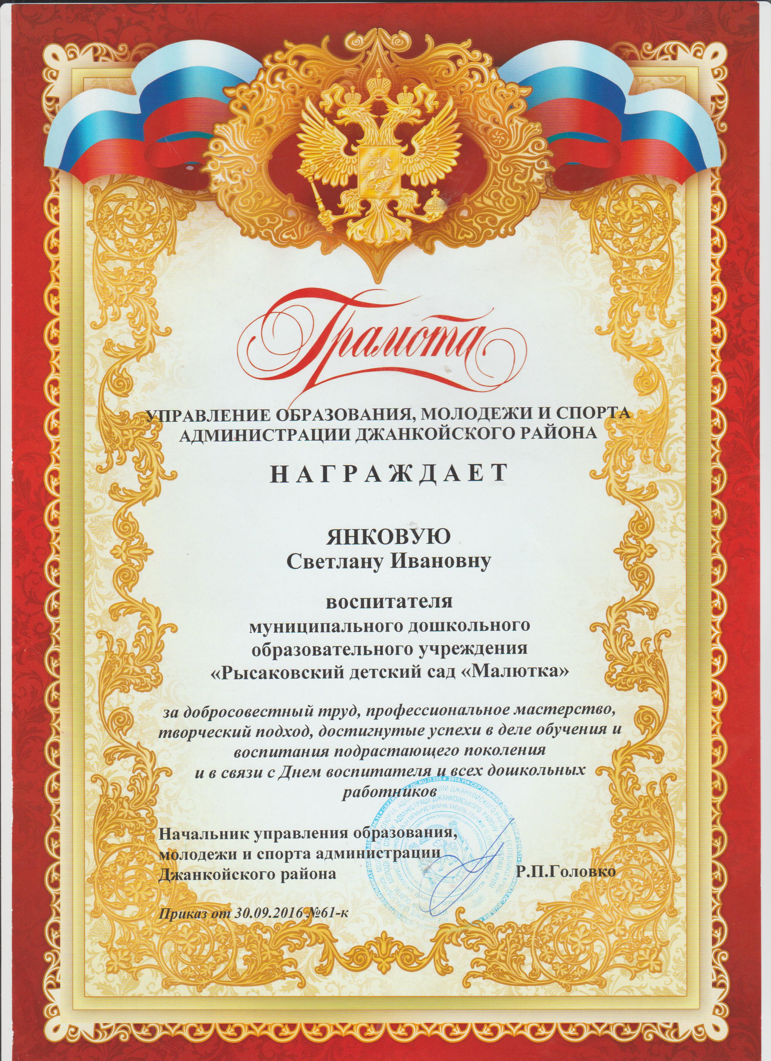 Воспитатель Янковая Светлана Ивановна